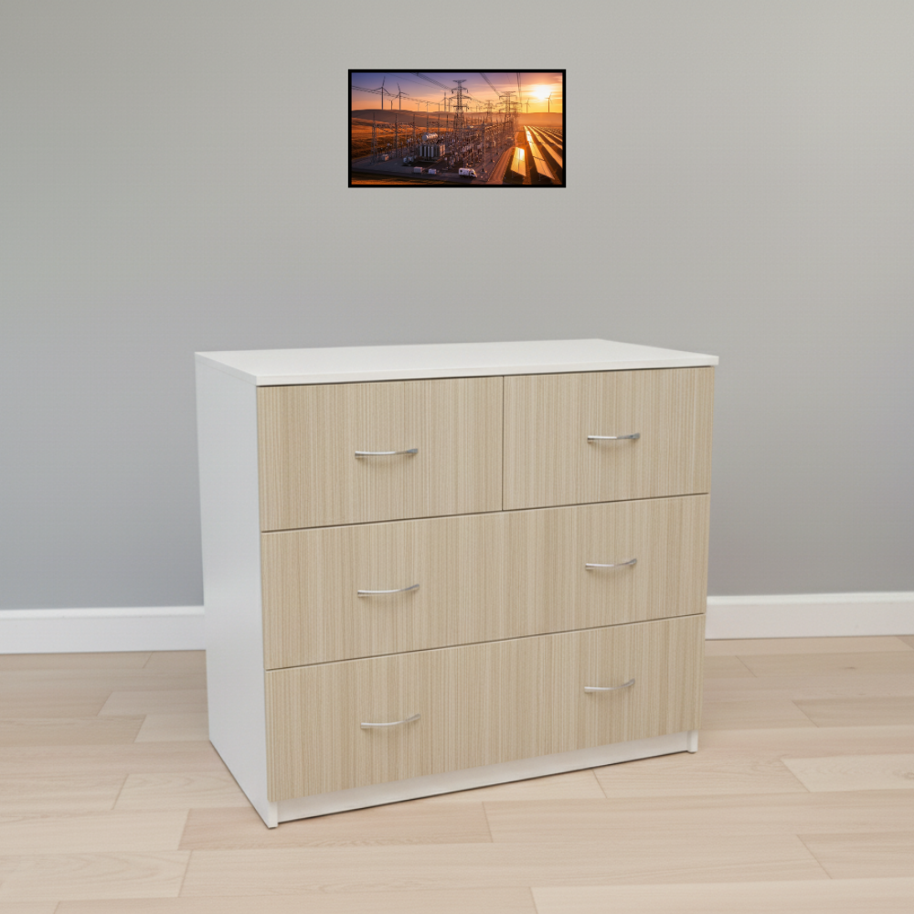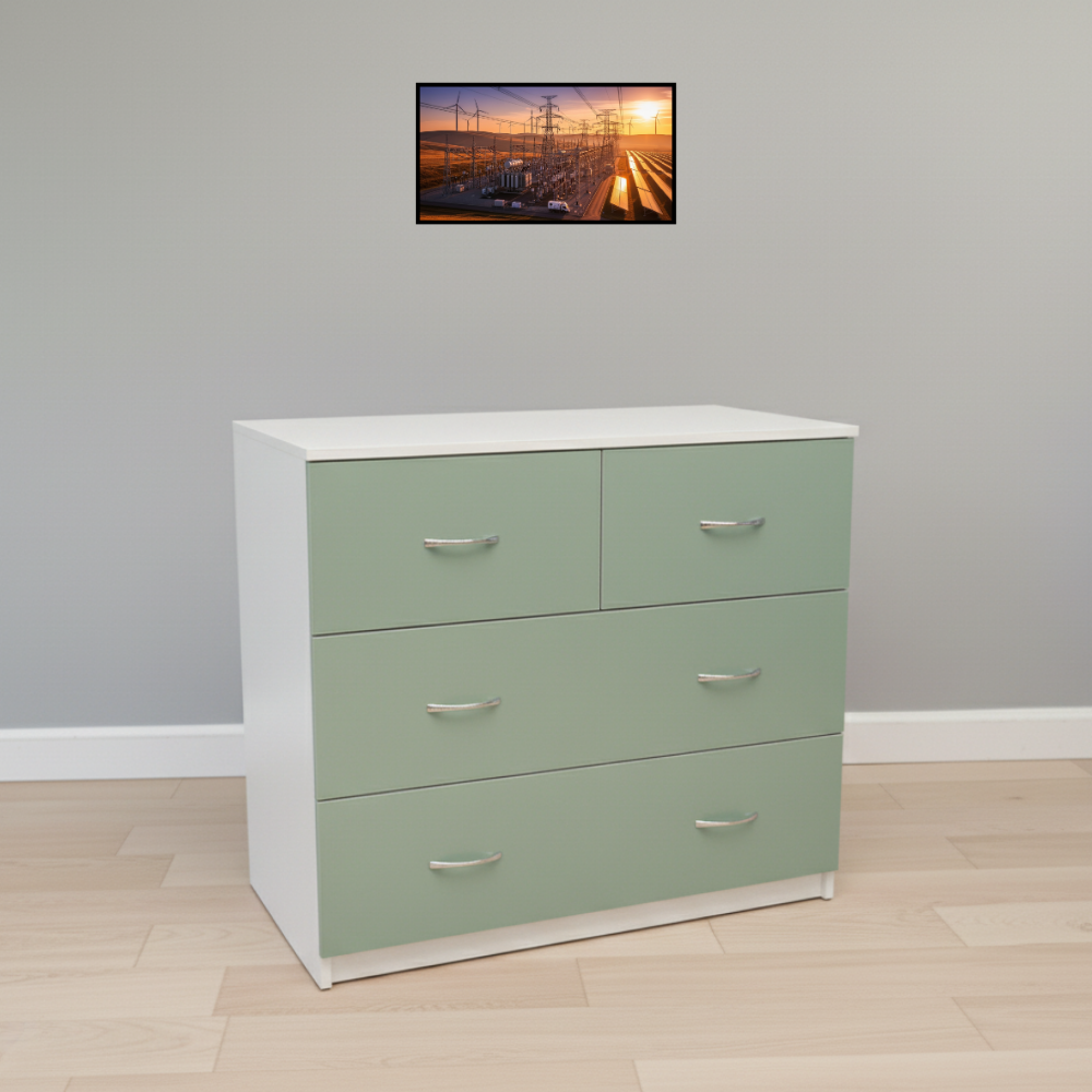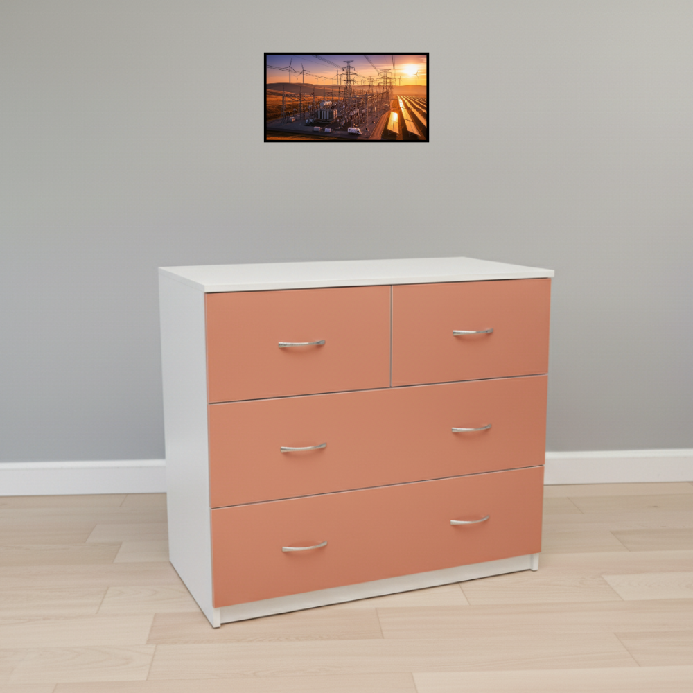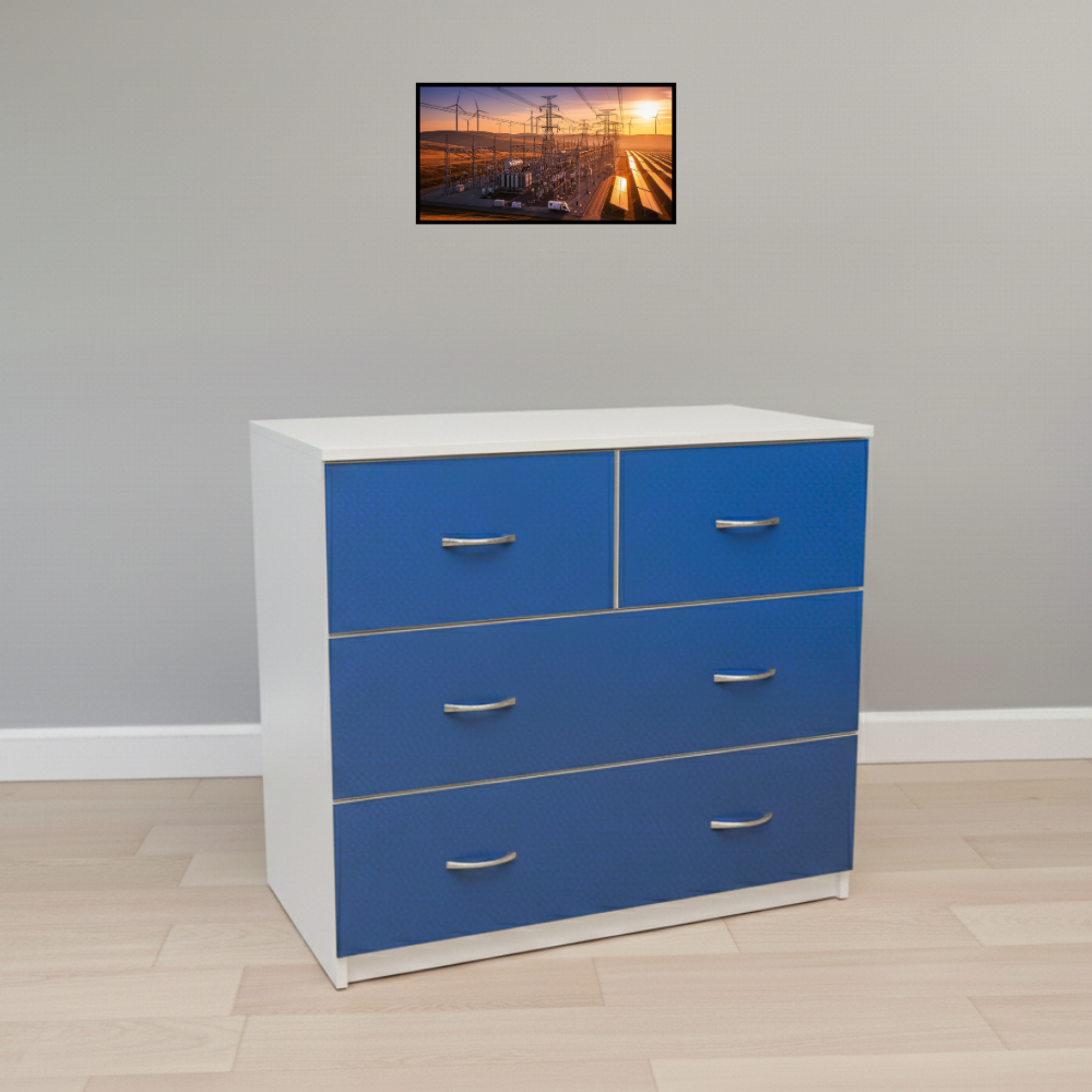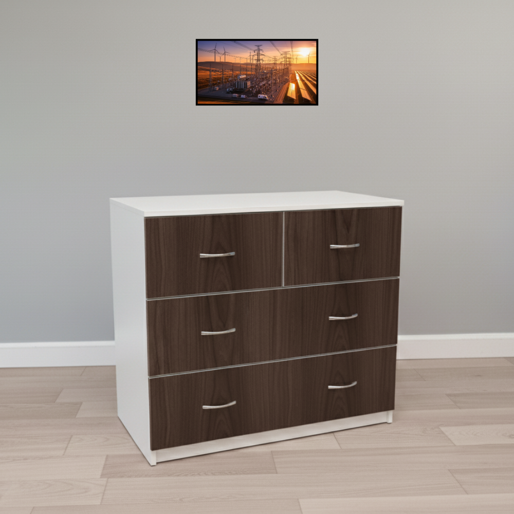 Incluye dos cajones superiores pequeños y dos inferiores amplios para una organización eficiente.