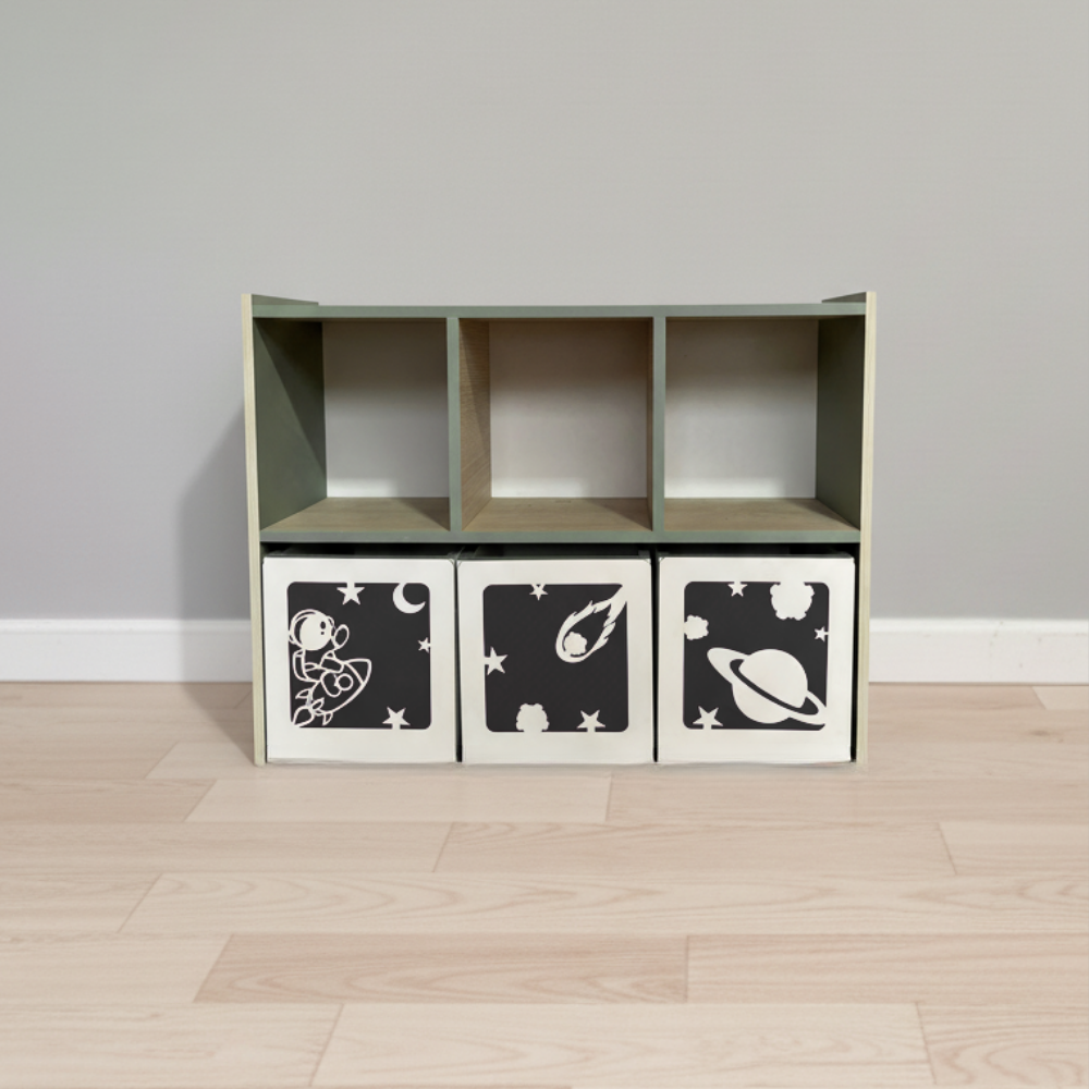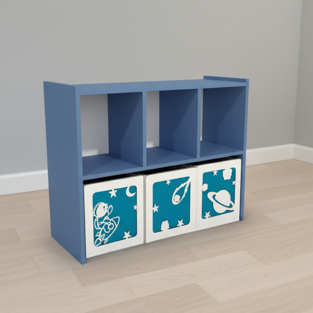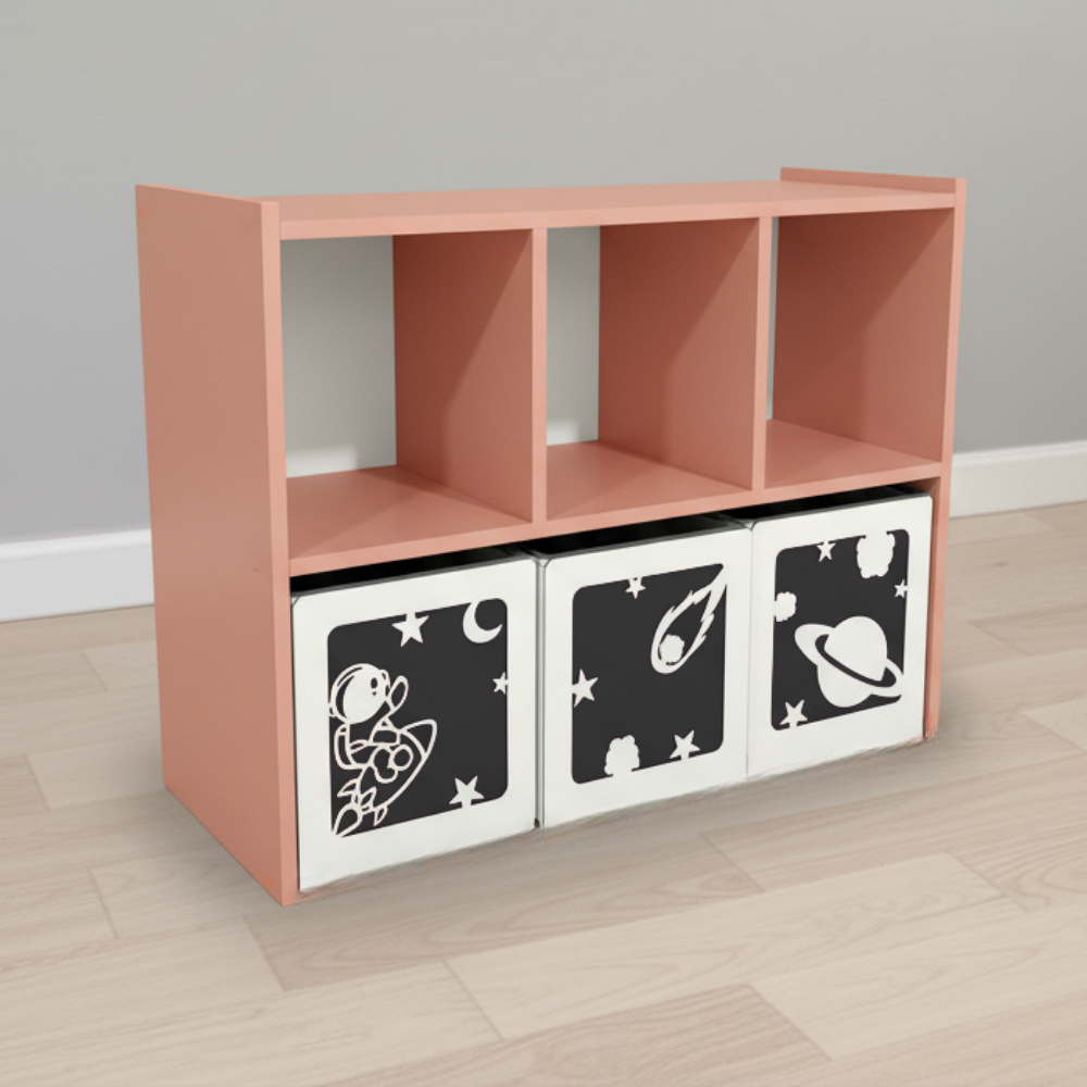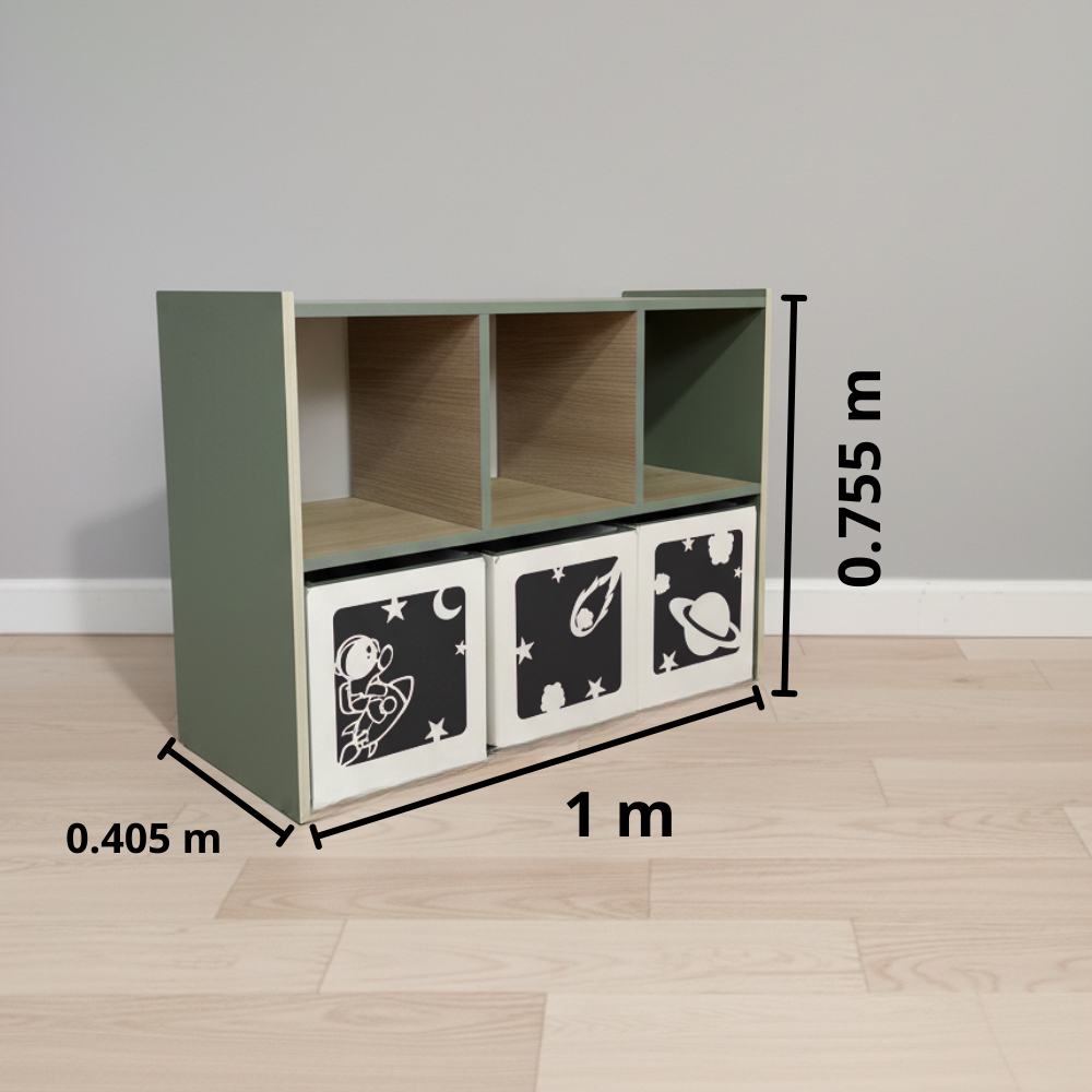 Su estructura funcional permite organizar juguetes de manera sencilla, fomentando la autonomía infantil. Ideal para dormitorios y áreas de juego, combina durabilidad con un diseño pensado para el uso diario.