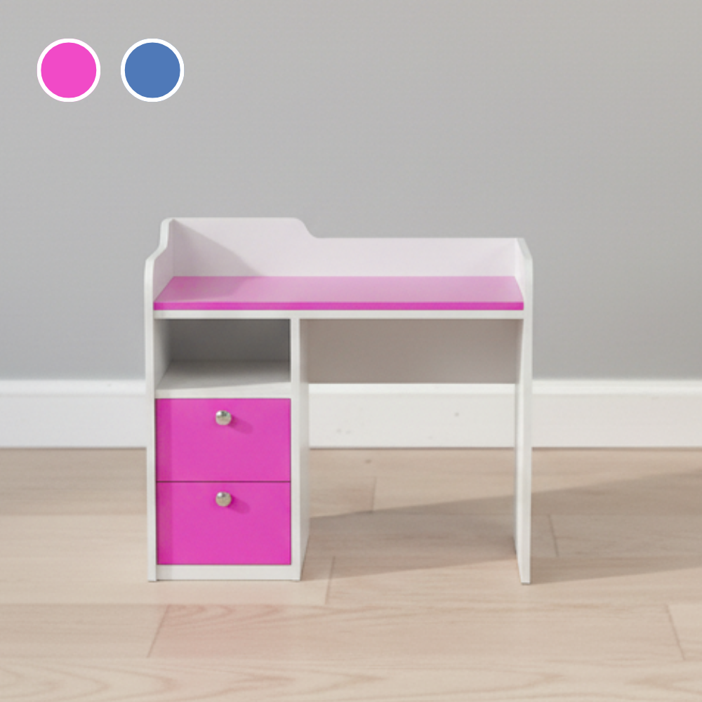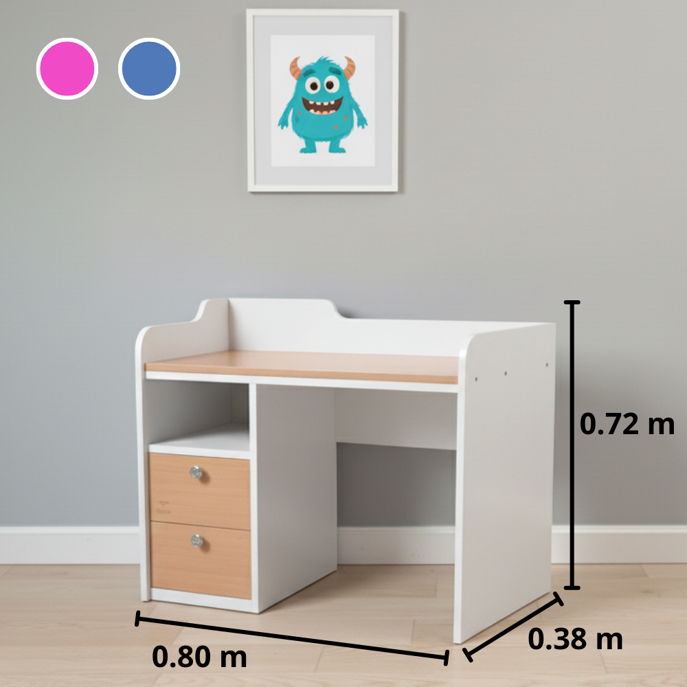 Escritorio infantil Fucsia, Azul lago y Roble americano.